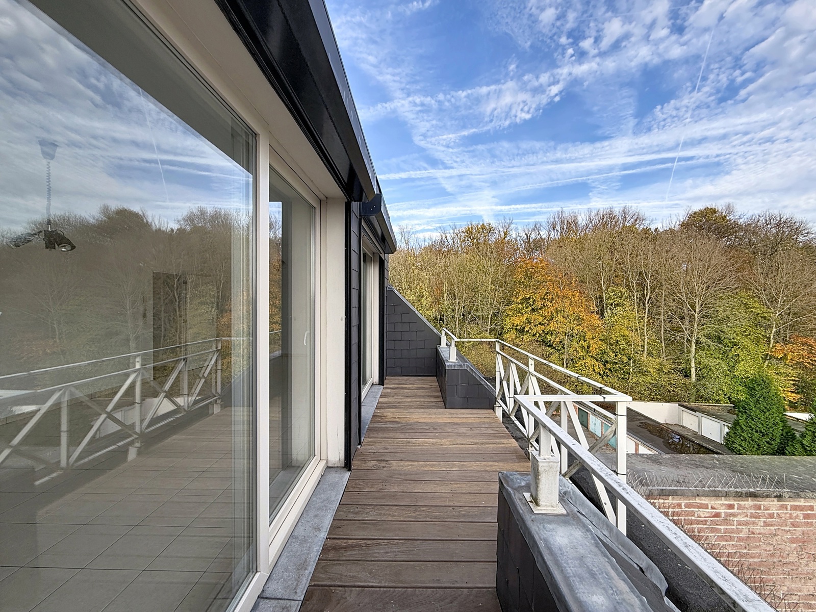 Situé à proximité immédiate du bois de Dieleghem, CG.Properties vous propose au 4ème et dernier étage, un spacieux penthouse 2 chambres avec terrasse. Celui-ci se compose d'un hall d'entrée avec wc séparé, spacieux et lumineux espace de vie donnant accès à une terrasse offrant une vue sur le bois, grande cuisine séparée équipée, coin buanderie/débarras, hall de nuit, 2 grandes chambres, salle de bains avec douches. Possibilité d'acquérir un garage en supplément. PEB:D+. Double vitrage PVC - chaudière individuelle au gaz - électricité en attente du rapport. Informations et visites: info@cgproperties.be